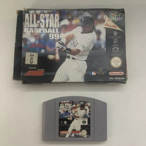 All-Star Baseball 99 for Nintendo 64 is a classic sports game published by Acclaim in 1998. This PAL version is suitable for all ages with a G rating, offering exciting baseball gameplay on the N64 platform. The game comes boxed and includes FREE tracked Australia Post shipping, ensuring a smooth delivery to your door. Perfect for fans of sports games or collectors of Nintendo 64 titles, this game is a must-have addition to any gaming collection.